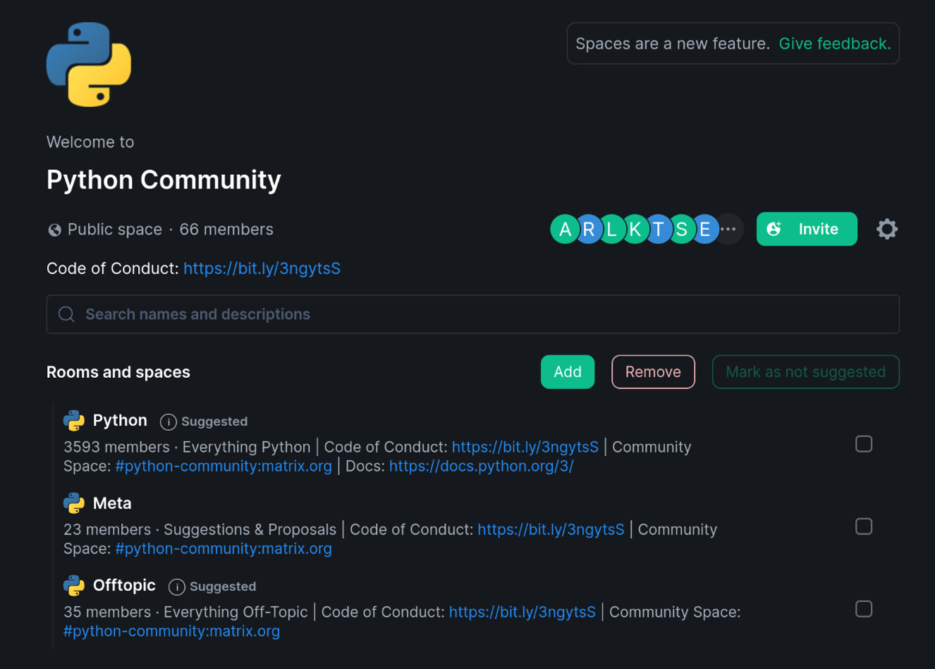 | Matrix and Community | Matrix, Spaces and Announcement |